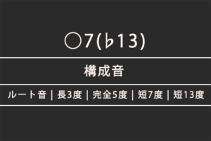 - B7(♭13)は、ドミナントセブンス(セブンスコード)のB7にオルタードテンションの短13度の音を加えたテンションコード