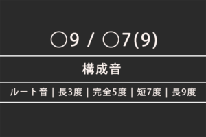 コード名 | ルート音 | 長3度 | 完全5度 | 長7度 | 長9度 |