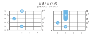 - D7(9):四和音のD7に長9度を足した五和音のテンションコード