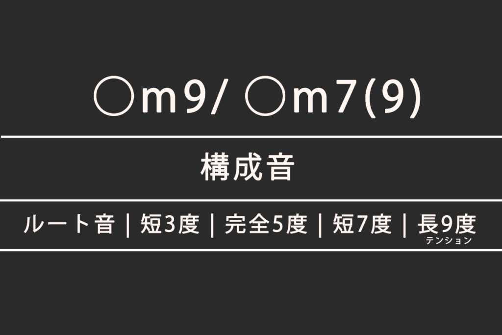 ◯m9 / ◯m7(9)の構成音・指板上の音の配置