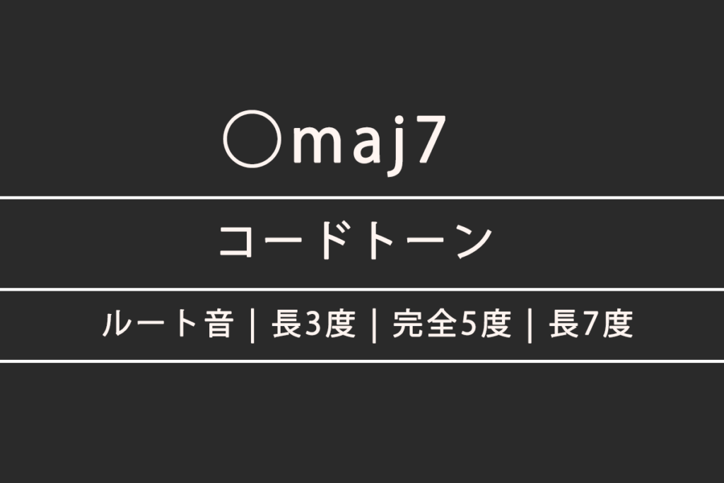 ◯maj7のコードトーン一覧 maj7コード(メジャーセブンス)のコードトーンを一覧でご覧いただけます。 ※コードトーン:三和音、四和音のコードの構成音 maj7コードの構成音(コードトーン) ルート音 (R)長3度 (M3)完全5度 (P5)長7度 (M7) コード名 ルート... -