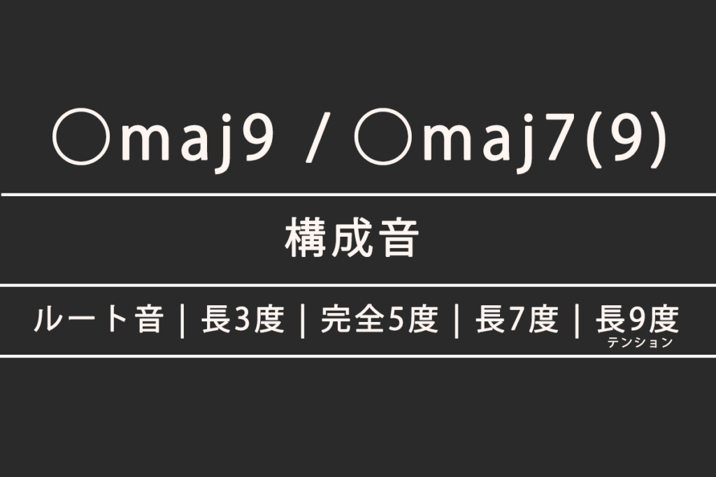 ◯maj9 / ◯maj7(9)の構成音・指板上の音の配置