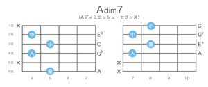 4弦7フレットのAをルート音とするとAdim7になるが、