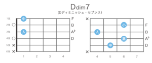 コード名 | ルート音 | 短3度 | 減5度 | 減7度 |