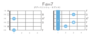 4弦1フレットのE♭をルート音とするとE♭dim7になるが、