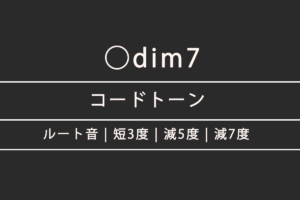 - Cdim7は、「ルート + 短3度 + 減5度 + 減7度」で構成される減七の和音(ディミニッシュ・セブンス)のコード