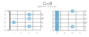 Dm9 / Dm7(9)のギターコードの押さえ方・指板図・構成音