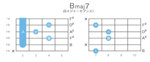 - C♯とD♭は異名同音なので、C♯maj7とD♭maj7は同じコード