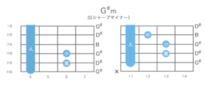 - G♯とA♭は異名同音(音名は異なるが実際の音が同じ音)で、G♯mとA♭mはコードの押え方や実音は同じであるが、構成音の音名が異なる。