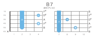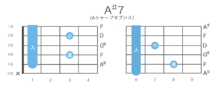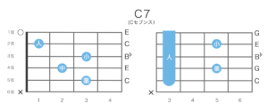 コード名 | ルート音 | 長3度 | 完全5度 | 短7度 |