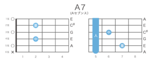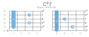 6弦ルート①から5、6弦の押弦を省略した押さえ方