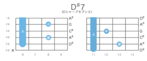 - Dmaj7とD7は、7度の音が長7度(メジャー7th)か短7度(マイナー7th)かが異なる