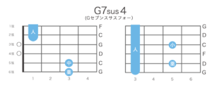 Gsus4に短7度を加えたG7sus4は以下の記事で詳しく解説