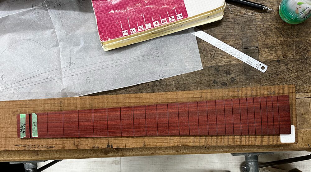 ワンピースネックにするほどの厚みはないので貼り指板で作ります。