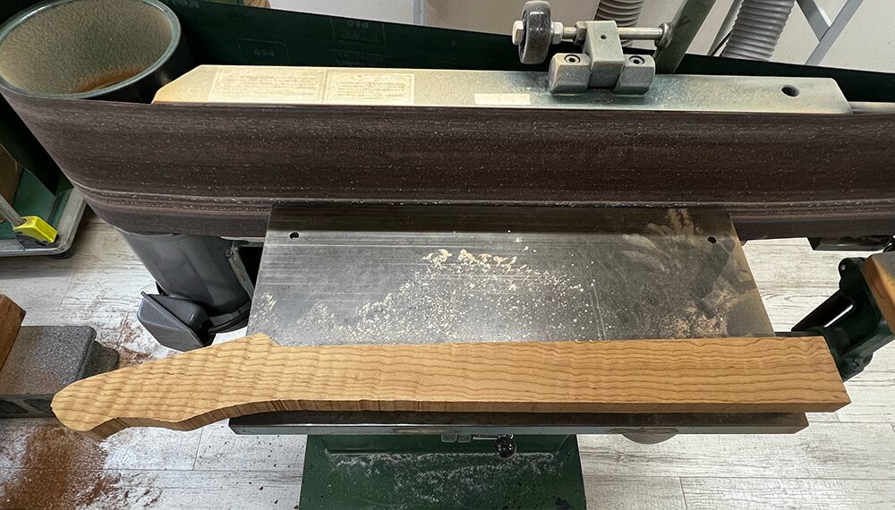 ・グリップ面(裏面)をベルトサンダーで平面出しする