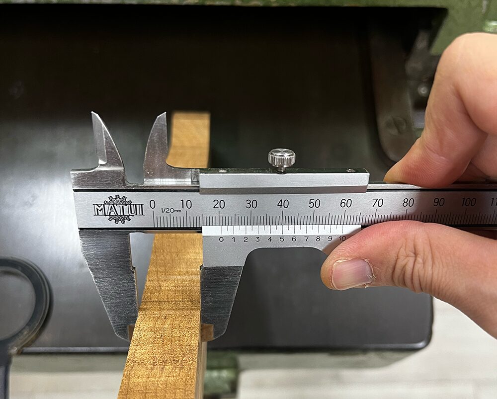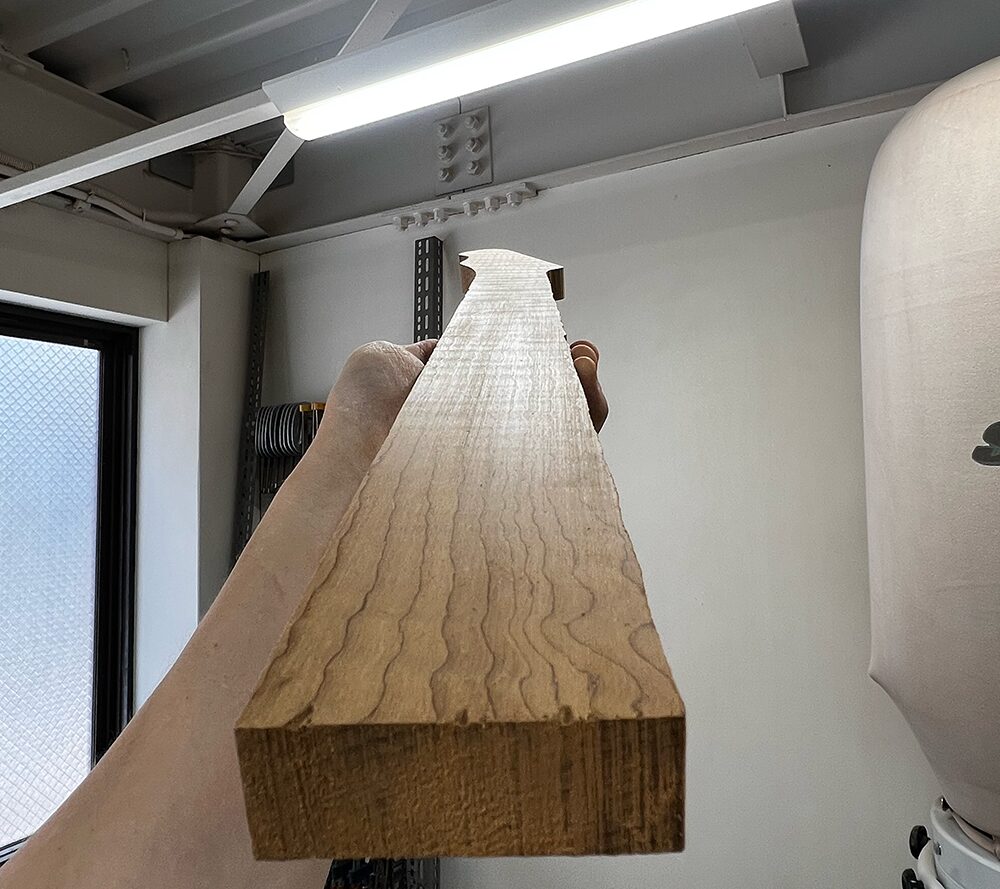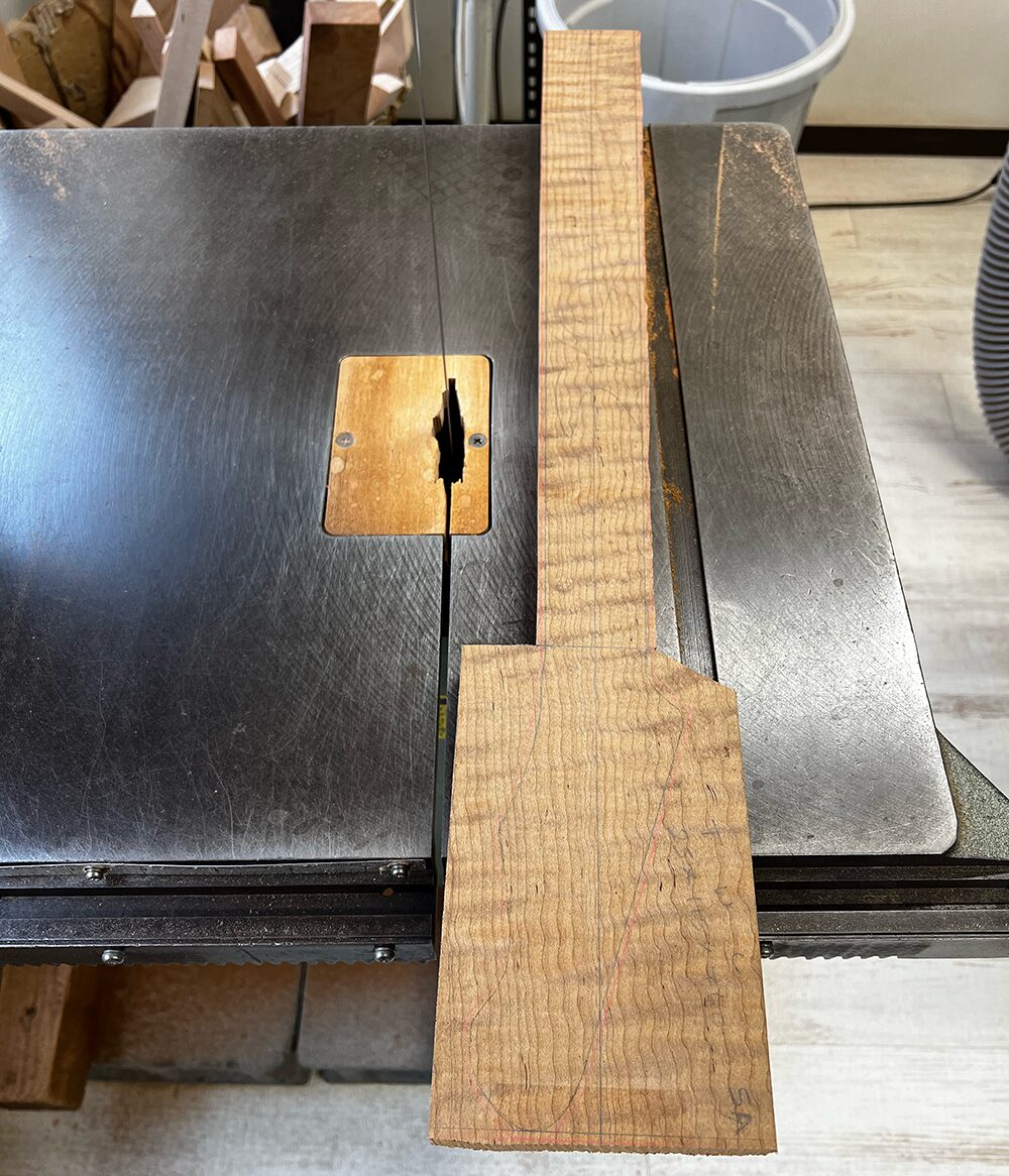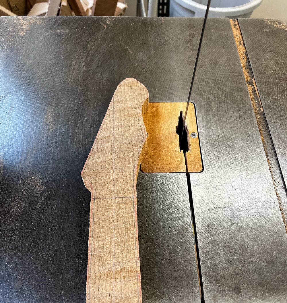 6弦側はバンドソーの幅の関係で斜めに切れ込みを入れます。