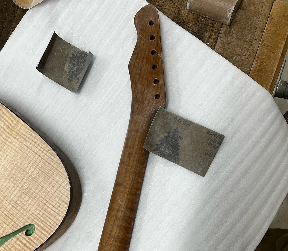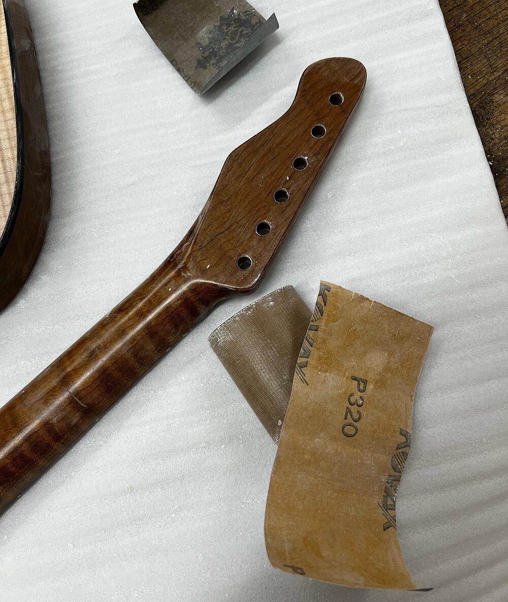 ラッカーサンディングシーラー後の磨きは、#320のサンディングペーパーで軽く磨き、#600で磨き上げる、という工程になります。