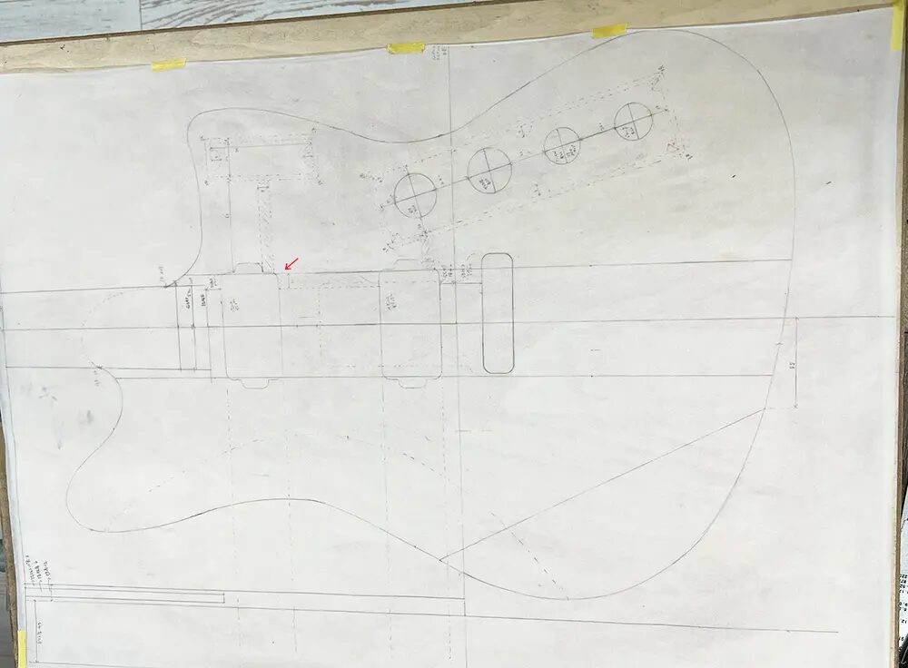 今日修正したのがこちら。配線穴の位置をほんの少し変えました。フロントとリアのピックアップをつなぐ配線穴を、ビス留めザグリの位置から繋いでいたものを、ビス留めザグリの根本あたりから繋ぐようにしました。
